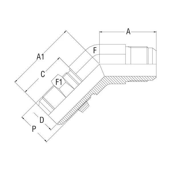 | Model No. | TUBE OD (MM) | UN / UNF (INCH) | THREAD (A/F) | P (MM) | A (MM) | A1 (MM) | C (MM) | D (MM) | F (MM) | F1 (MM) | Model No. (alt) |