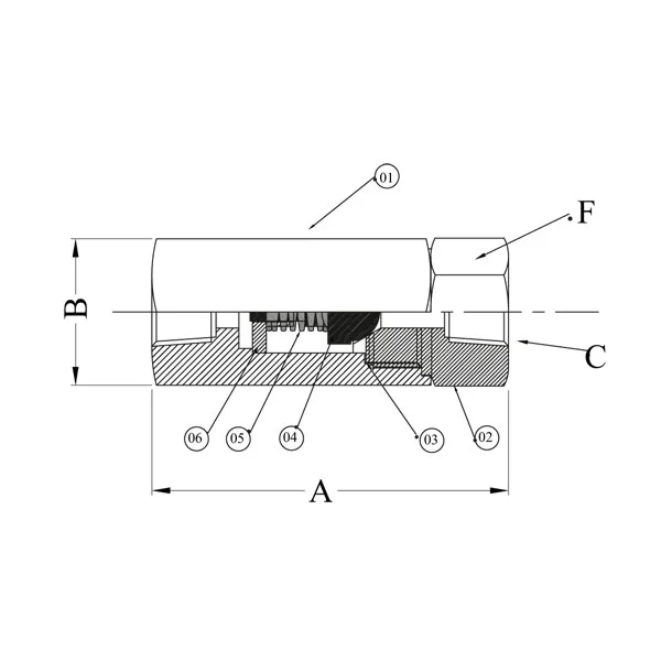 | Model No. | A (mm) | B (A/F) (mm) | C | F (A/F) (mm) |