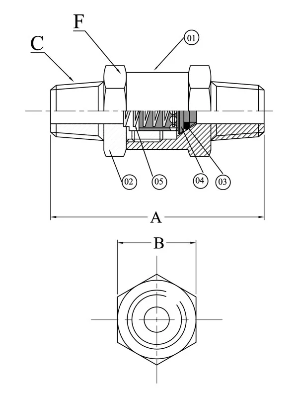 | Model No. | A (mm) | B (A/F) (mm) | C | F (A/F) (mm) |