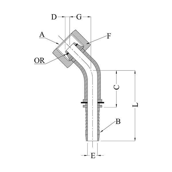 | Model No. | METRIC (F) | HOSE | C | D | øE | F A/F | G | L | O Ring |
