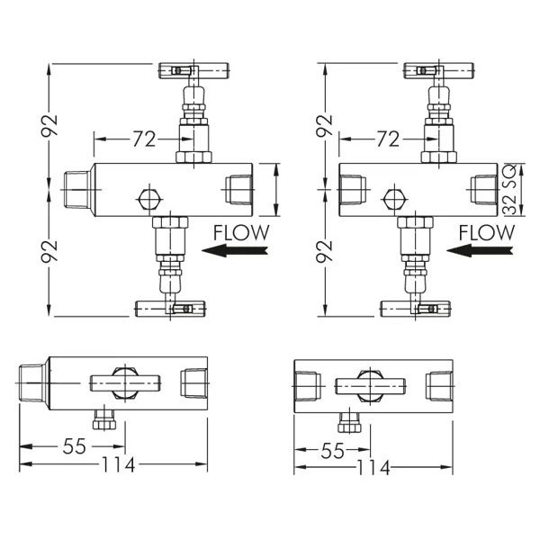 -65°F (-54°C) TO 464°F (240°C) - Double block & bleed manifolds are designed to mount to pressure guages, pressure transmitters and pressure switches.