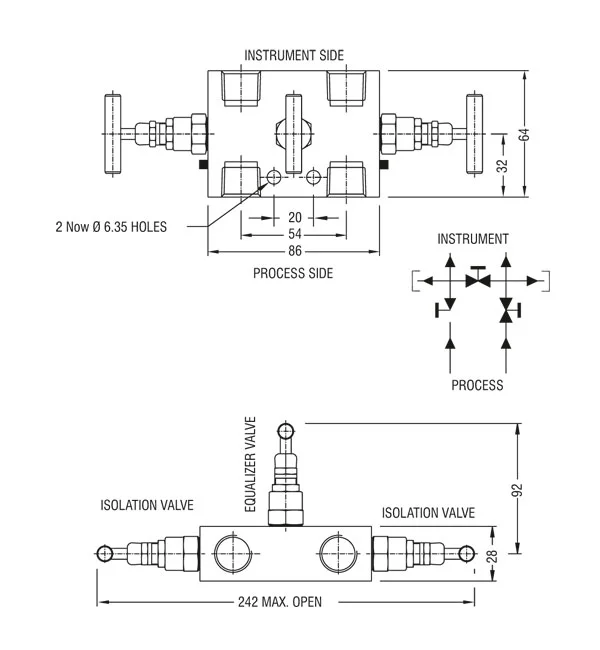 | PROCESS PORT | GAUGE PORT | DRAIN PORT | A | L1 | L2 |