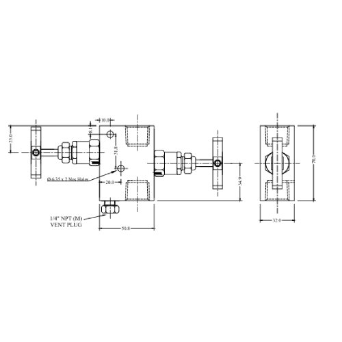 Two Valve Manifold “R” Type for Pressure Instruments (Pipe x Pipe)