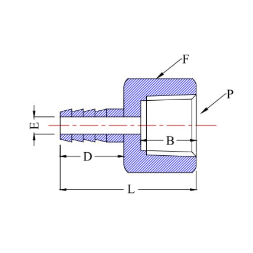 Model No. Hose ID Size NPT Size L B D E F (A/F)