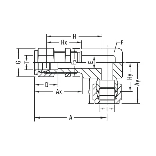 Model No. T Tube OD A Ax Ay C D E min. F A/F G A/F H Hx Hy Panel Hole Drill Size Max. Panel Thickness