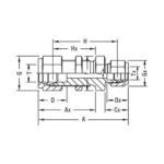| Model No. | T Tube OD | T Tube OD | A | Ax | Cx | D | Dx | E min. | F A/F | G A/F | Gx A/F | H | Hx | Panel Hole Drill Size | Max Panel Thickness |