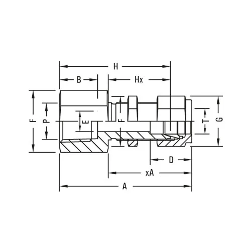 | Model No. | T Tube OD | P NPT Male | A | B | C | D | E min. |