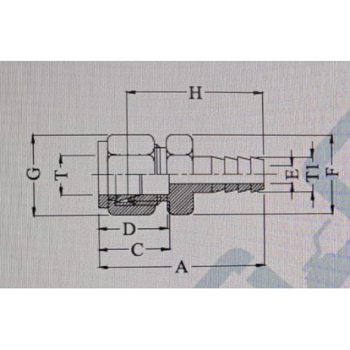 Model No. T Tube OD T1 Hose ID A C D E min. F A/F G A/F H